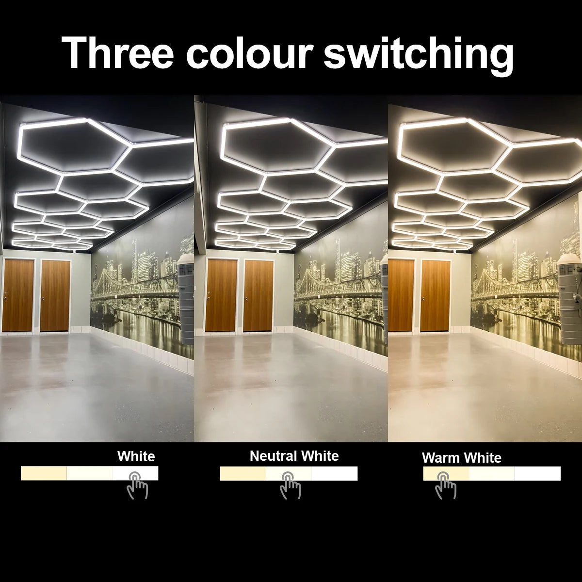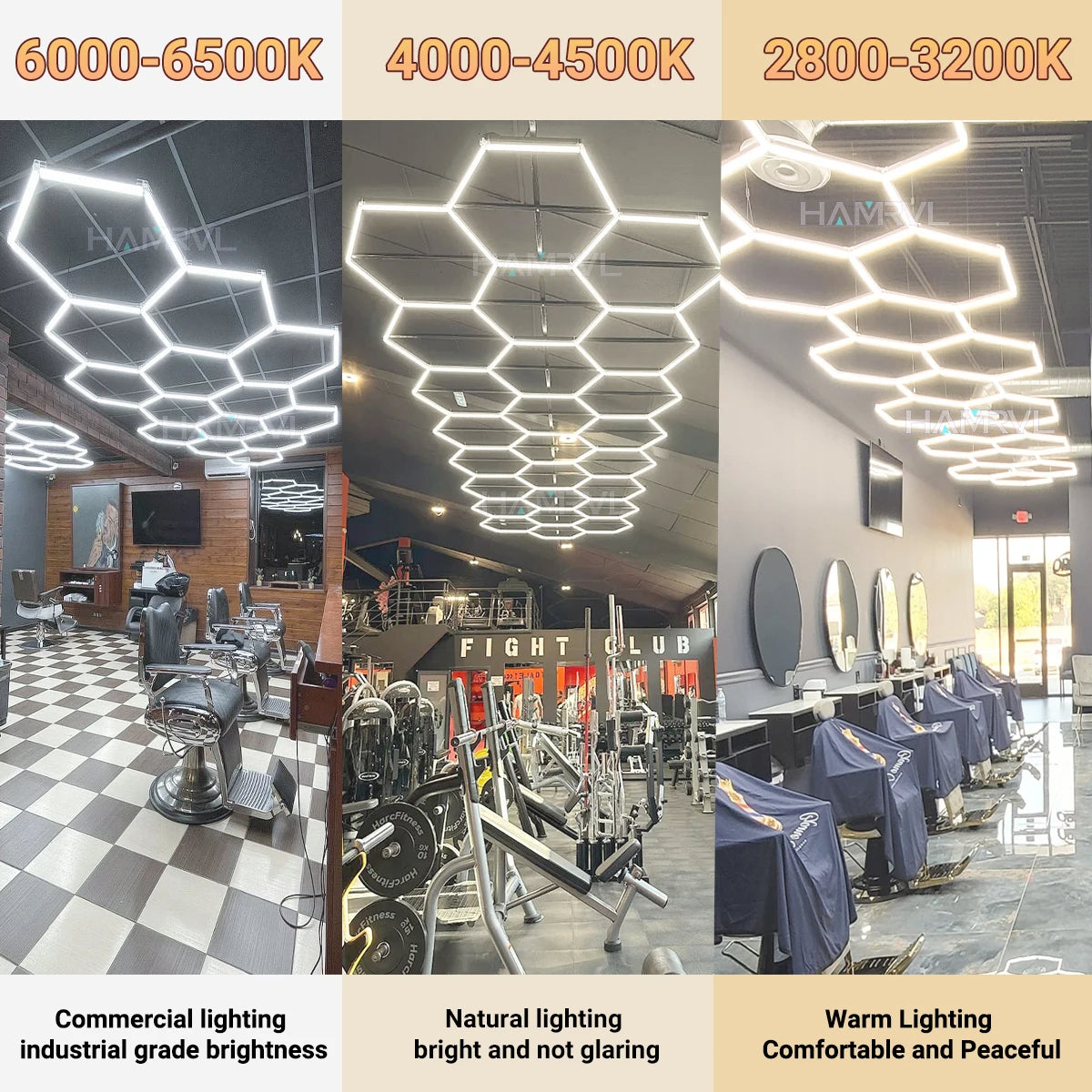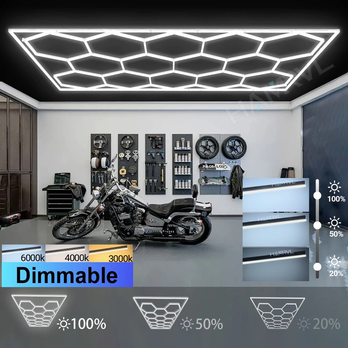Illuminate your space with our Dimmable Hexagon LED Honeycomb Lamp, designed to provide natural lighting from 3000K to 6000K. Perfect for garages, workshops, gyms, or barber shops, this innovative ceiling light not only enhances visibility but also adds a modern touch to any environment. Its unique hexagonal design allows for versatile installation, ensuring you can create the perfect ambiance tailored to your needs. Upgrade your lighting experience and enjoy the benefits of energy efficiency and style in one stunning fixture.
